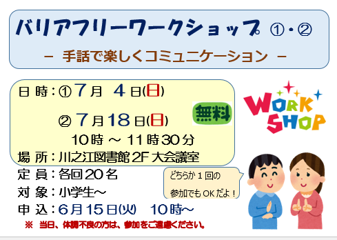 7月18日(日)に開かれる②も①と同様、初心者向けの楽しく手話を学べる内容になっています。
