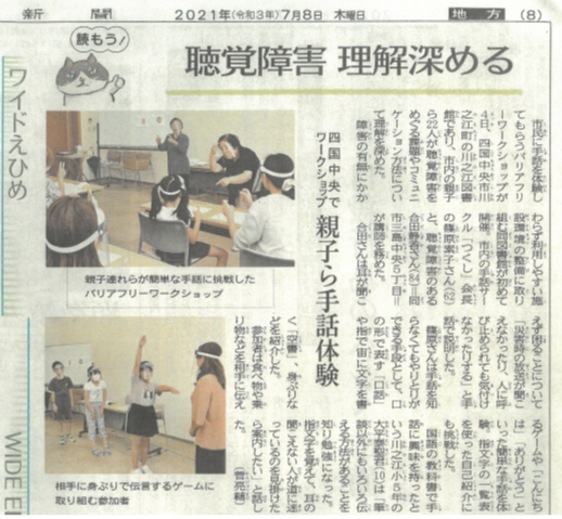 「聴覚障害理解深める」2021年7月8日付愛媛新聞
