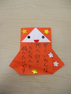 おみやげに、おりひめとひこぼしの短冊をもらいました。