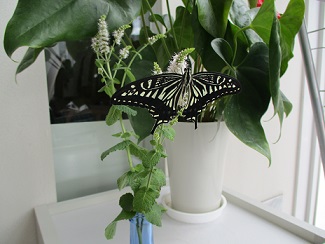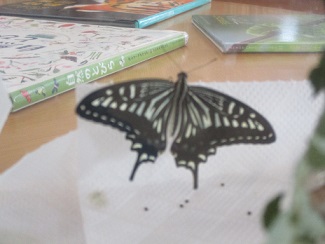 NPO法人 紙のまち図書館 > 新着情報 > アゲハチョウになりました! アゲハチョウになりました! 2021.07.07更新 展示 川之江図書館 7月6日(火)、7日(水) 成長をみまもってきた幼虫が、ついにアゲハチョウになりました。 幼虫からさなぎになって、そしてチョウになる様子を図書館で 観察することができました。 やわらかそうな羽をゆっくりパタパタ動かして、飛び立つ準備…。 そうして大空へ飛んでいきました。 元気でねー! あと2匹も無事に成虫になるといいな…。