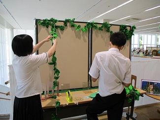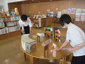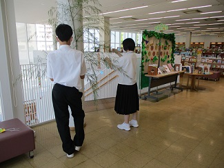 7月のテーマ展示の飾り付けを手伝いました。
