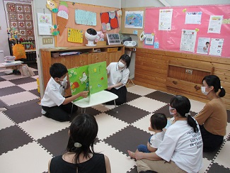 小さな子どもたちに絵本の読み聞かせを行いました。しっかり練習したので、みなさんとても