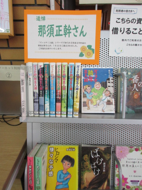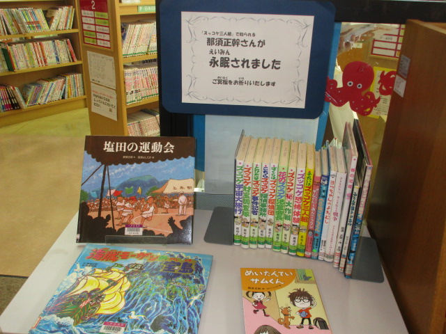 三島図書館では那須さんのコーナー(一般・児童)を設けました。