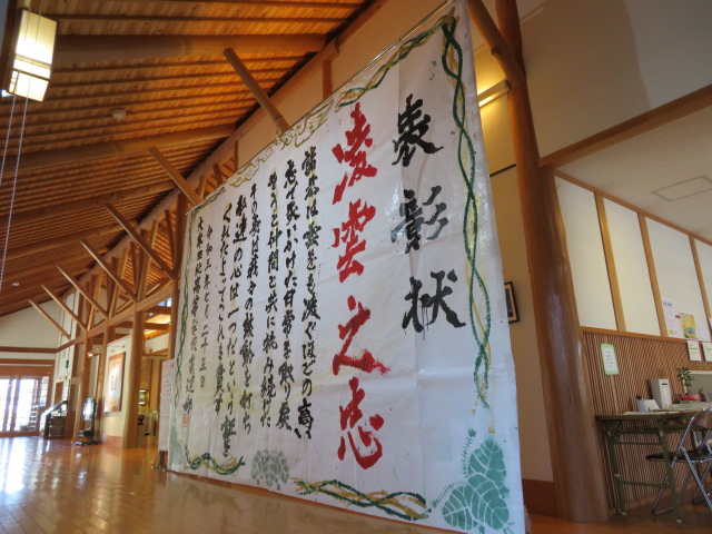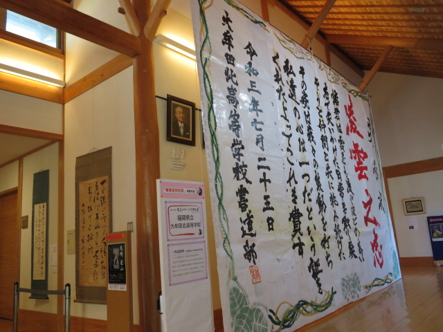 NPO法人 紙のまち図書館 > 新着情報 > 圧巻の迫力! 圧巻の迫力! 2021.08.04更新 お知らせ 暁雨館 8月3日(火)に7月25日(日)に行われた「第14回書道パフォーマンス甲子園」の作品展示作業が行われました。暁雨館に展示されたのは、審査員特別賞を受賞した福岡県立大牟田北高等学校の作品です。テーマは「凌雲之志~雲をも凌ぐ高い志を持つ~」です。間近で迫力あふれる作品をお楽しみください。