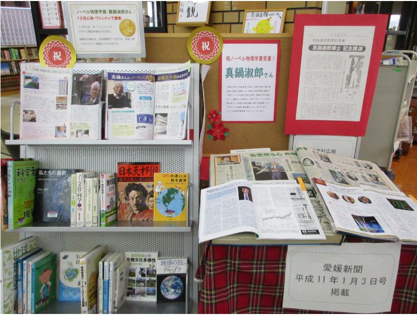 三島図書館では、環境やノーベル賞、出身である新宮の資料を展示しています。