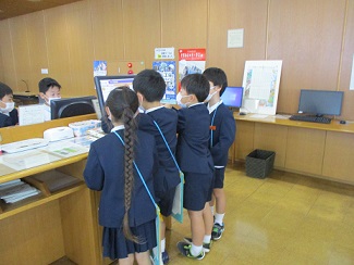 金生第一小学校2年生のみなさんが図書館見学に来てくれました。