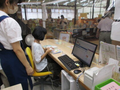 カウンターでの貸出・返却の体験や書架への本の返却など、様々な図書館の仕事を体験しました。