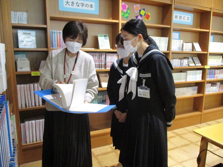 カウンターでは、利用者の方に明るいあいさつをし、本を両手で手渡すなど、ていねいな対応が光りました。