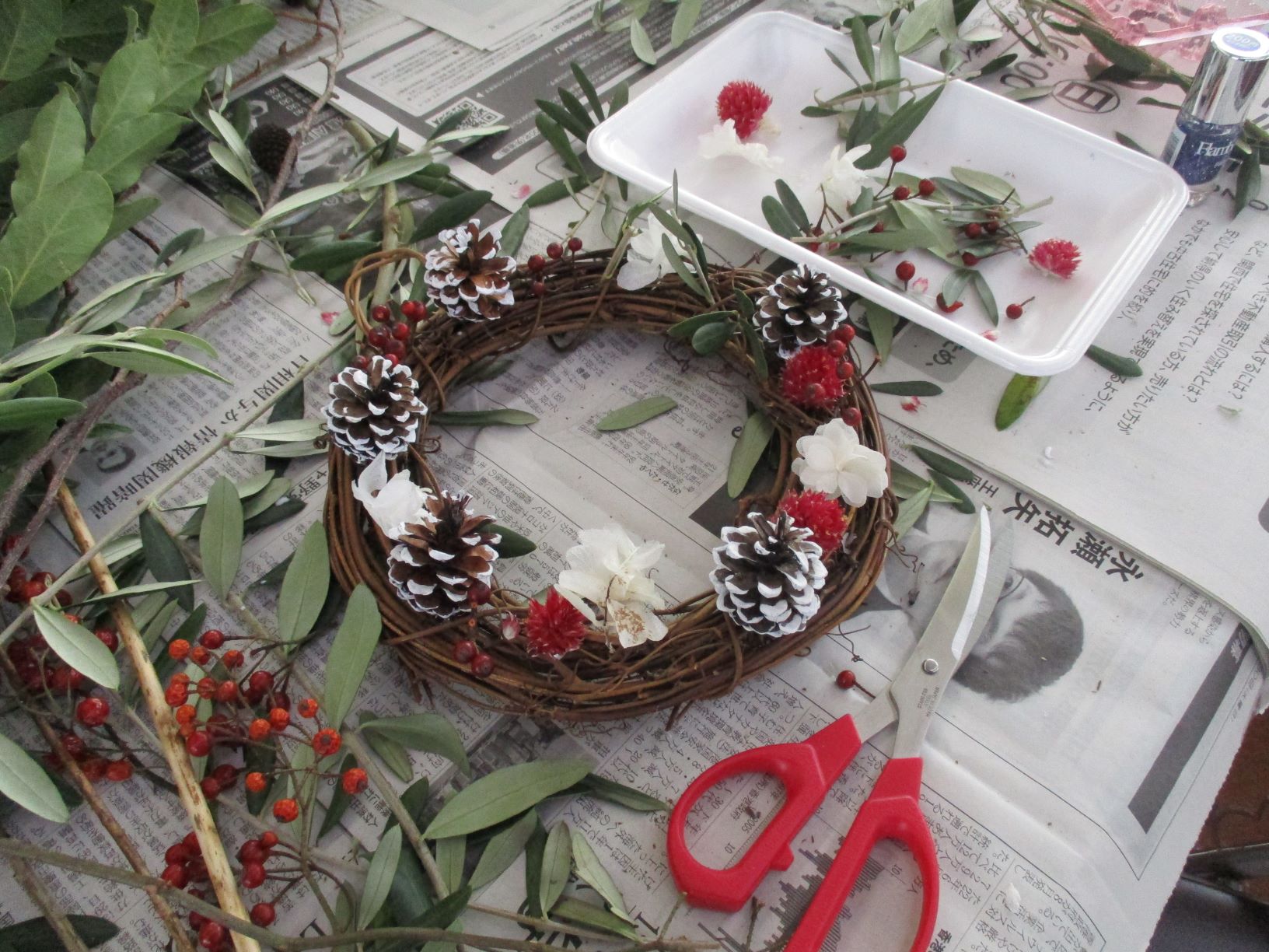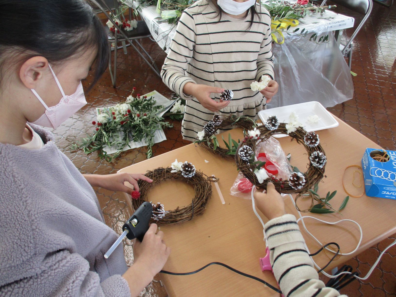 クリスマスリースやミニツリーも作りました^^