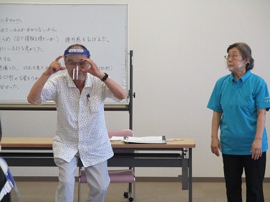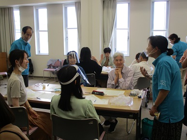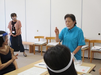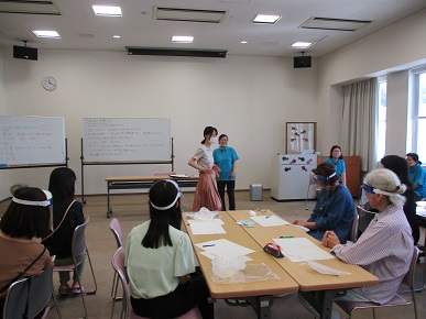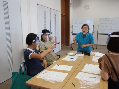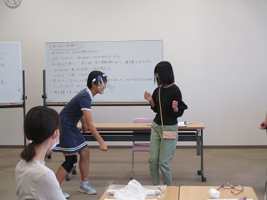 では、聞こえない状況の中で人はどんな気持ちになるのか? 実際に体験して感じたことを出し合いました。周囲の人が話をしたり、一緒に行動する中で、自分だけが聞こえなくて何をしていいか分からないと、取り残された感じがして不安・一人ぼっちになったみたい・悪口を言われているような気がする・目で見て創造することをあきらめてしまう など様々な感情がわいてきました。でも、ゆっくりはっきり口を開けて話しかけてくれると、わかる言葉もありました。