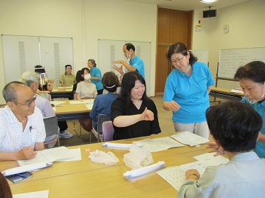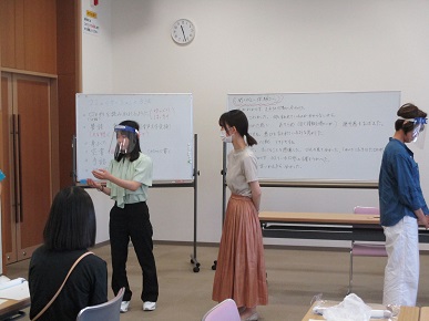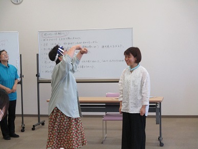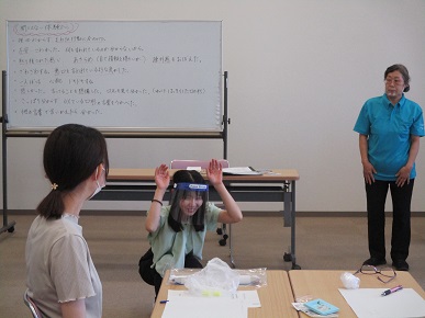 最後に簡単なあいさつと、自分の名前を手話で表現しました。手話サークルつくしの皆さんに教わって、自分の名前を表したり、手話で自己紹介をしたりしました。ただ手を動かすだけではなく、表情がとても大事だということもわかりました。「相手に伝えたい、つながりたい」という思いがコミュニケーションの源だという言葉が心に残りました。