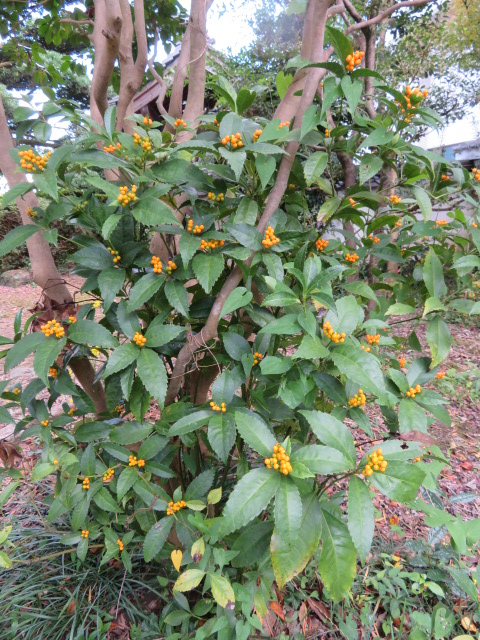 秋の深まりとともに、庭園のツワブキの花が見ごろを迎え、植物の葉や実が色づき始めています。ご来館された際には、ぜひ、秋の深まりもお楽しみください。