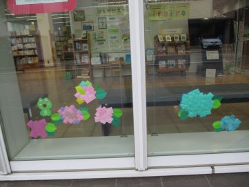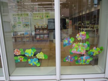 今月の川之江図書館は、たくさんのあじさいの花が咲いています🎵