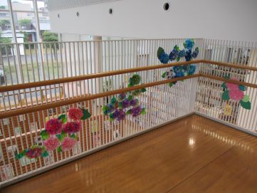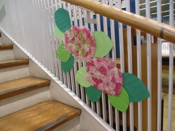階段のあじさいもきれいに咲いています♪
