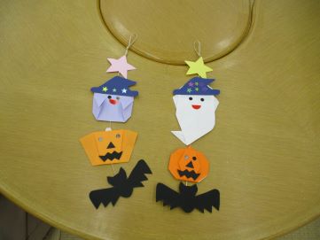 今日の折り紙は、かぼちゃとおばけでした。