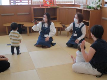 絵本のあとは、どんぐりころちゃんのわらべうたと、