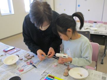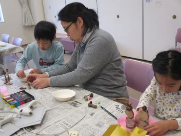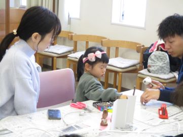 人形ができたら、ぼんぼりやお供え物、五人ばやしを作るお友達もいて、