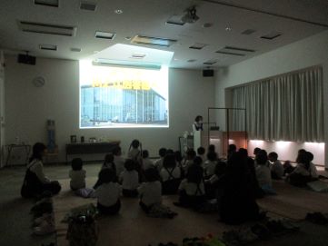 スクリーンで図書館の説明が終わったら、たくさんの質問をしてくれました。