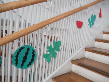 階段には、夏の果物がたくさん🎵
