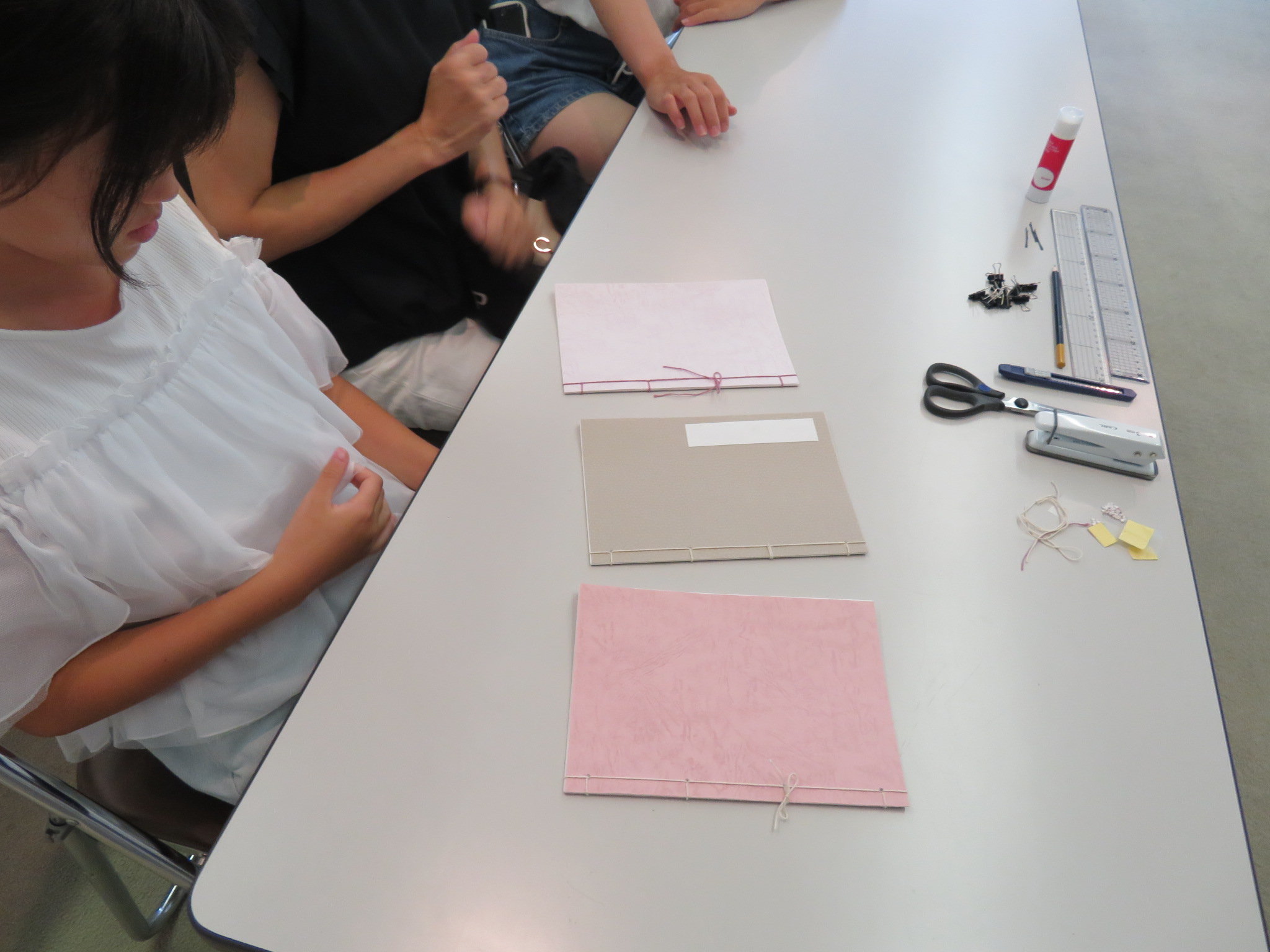 皆さんには、ご自分の好みの色の表裏表紙と糸を選んでいただきました。