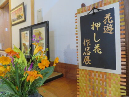本日9/26(金)より、押し花教室「花遊(はなゆう)」さんによる押し花作品展が暁雨館ではじまりました。