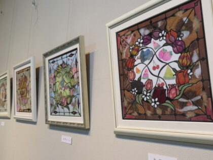 作品は、草花や果実など様々な素材と技術を使い、風景や建物、人物やメルヘンの世界などが個性豊かに表現されています。