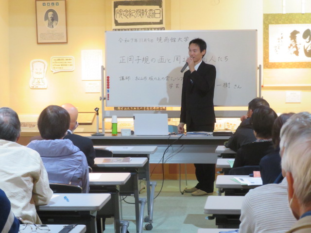 11月9日(日)、坂の上の雲ミュージアム学芸員の上田一樹さんを講師にお迎えし、暁雨館大学「正岡子規の画と周辺の画人たち」を開催しました。