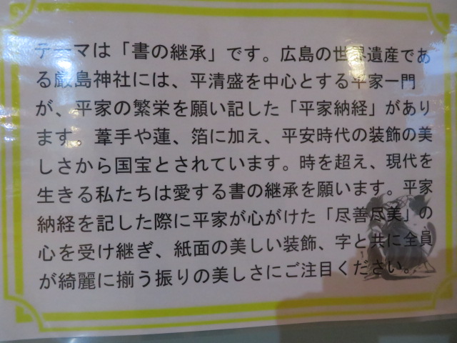 平家の繁栄を願い記した「平家納経」と自分たちの「書の継承」の願いを重ねて揮毫された作品は、とても美しく迫力があります。