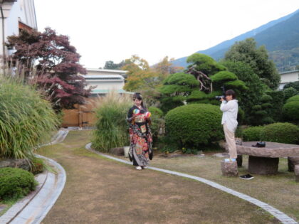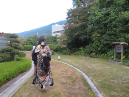 NPO法人 紙のまち図書館 > 新着情報 > 暁雨館ではこんなことも!? 暁雨館ではこんなことも!? 2025.11.08更新 お知らせ 暁雨館 毎年、この時期になると「成人式の前撮り」で暁雨館を訪れてくれる方がいます。 今日も美しい振袖姿で、館内や庭園で写真撮影をしてくださる方が・・・。 これから紅葉が始まる暁雨館の日本庭園は、記念撮影に絶好の場所です!(^^)! 成人式や七五三、結婚式などの人生の大切な節目にも暁雨館を是非ご利用ください!