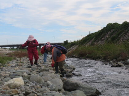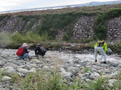 今回の定例会では、関川に行って自分の好きな石を探してみようということで、暁雨館学芸員も参加させていただきました。
