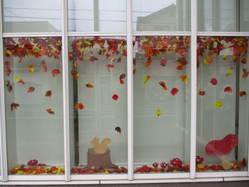 川之江図書館はすっかり紅葉しています。もうすぐ山も赤く染まるかな?