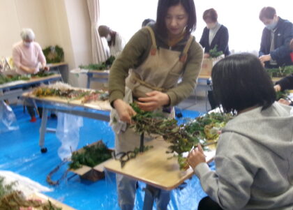 NPO法人 紙のまち図書館 > 新着情報 > 【終了】クリスマスリースを作ろう!🎀 【終了】クリスマスリースを作ろう!🎀 2025.12.03更新 イベント 土居図書館 ⛄イベント「クリスマスリースを作ろう!」が開催されました。 最初に、講師の説明を受け 思い描いている「リース」を作り始めます(^^♪ リースの土台にグルーガンや、針金で杉の葉や松ぼっくり、 ローズマリー、千日紅など巻きつけていきます。 わからない所は、先生に質問しながら素敵なリースが完成しました。 出来上がったリースは、ご自宅に飾ってくださいね。 クリスマスが素敵な一日となりますように! 参加してくださった皆さん、ありがとうございました🎵