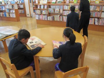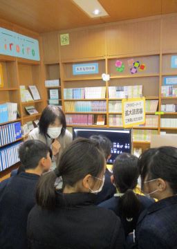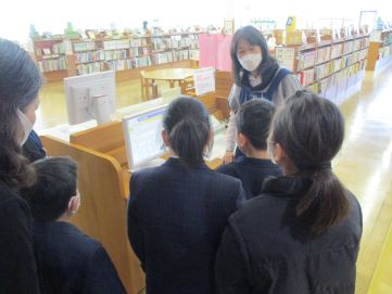 今日は、上分小学校の2年生から6年生の8人の子どもたちが図書館見学に来てくれました。