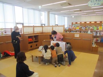 NPO法人 紙のまち図書館 > 新着情報 > ☆1月のおはなし会のお知らせ☆ ☆1月のおはなし会のお知らせ☆ 2026.01.10更新 イベント 川之江図書館 【お知らせ】 1月のおはなし会 ■えほんとあそぼう(幼児から小学生)終了 1月10日(土) 14時30分~ ■ちっちゃなおはなし会(乳幼児から) 1月14日 (水) 10時00分~ ■おやこふれあいあそび (乳幼児) 1月21日(水) 10時~ 【終了】 ◆えほんとあそぼう 1月10日(土) 14時30分~ 対象:幼児から小学生 (おはなし会の様子) 次回の「えほんとあそぼう」のおはなし会は、 2月7日(土) 14時30分からです♫