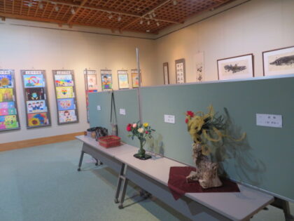 会場には、土居地域小・中学校の子どもたちの作品、市内のOBを含む先生方の作品が展示されています。