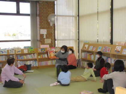 (2月のきんこんかんのおはなし会の様子)