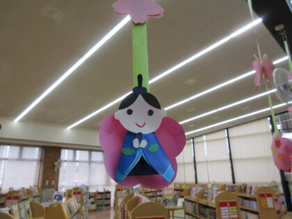 3月の児童室 つるし飾りは「おひなさま🌸」
